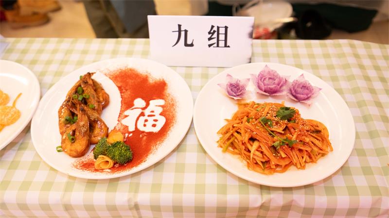比賽分熱菜、涼菜兩個項目,共四輪。在比賽現(xiàn)場,切菜聲、翻炒聲與歡笑聲交織,氣氛熱烈,熱鬧非凡。選手們化身“廚神”,十八般武藝悉數(shù)登場,從食材處理到火候把控,每一步都細致用心。鍋勺翻騰間,一個個常見的食材,經(jīng)過女職工們豐富的想象力和巧手的雕琢,拼成了一幅幅精美靈動的畫卷,讓活動儼然變成了一場美食嘉年華。參賽作品品類繁多,既有融入地域特色的“大美長白山”,也有富有詩情畫意的“山海遙”,更有美好寓意的“金玉滿堂”……每一道菜都色澤誘人、香氣撲鼻,充分展現(xiàn)了女職工們的烹飪技巧與生活熱情。